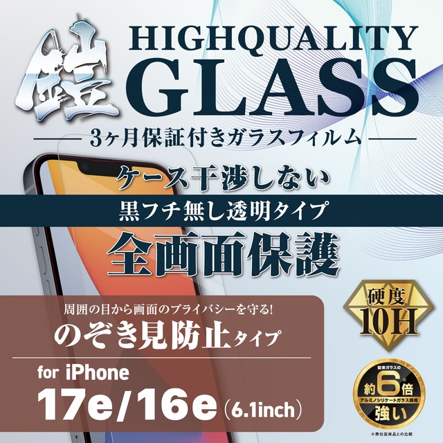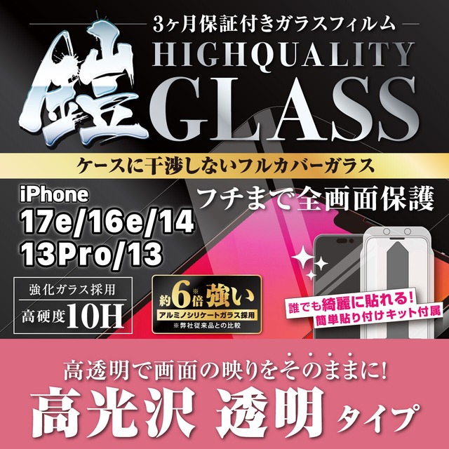 iPhone17e/16e【高光沢】3カ月保証付き『ガラスフィルム鎧』平面フルカバー