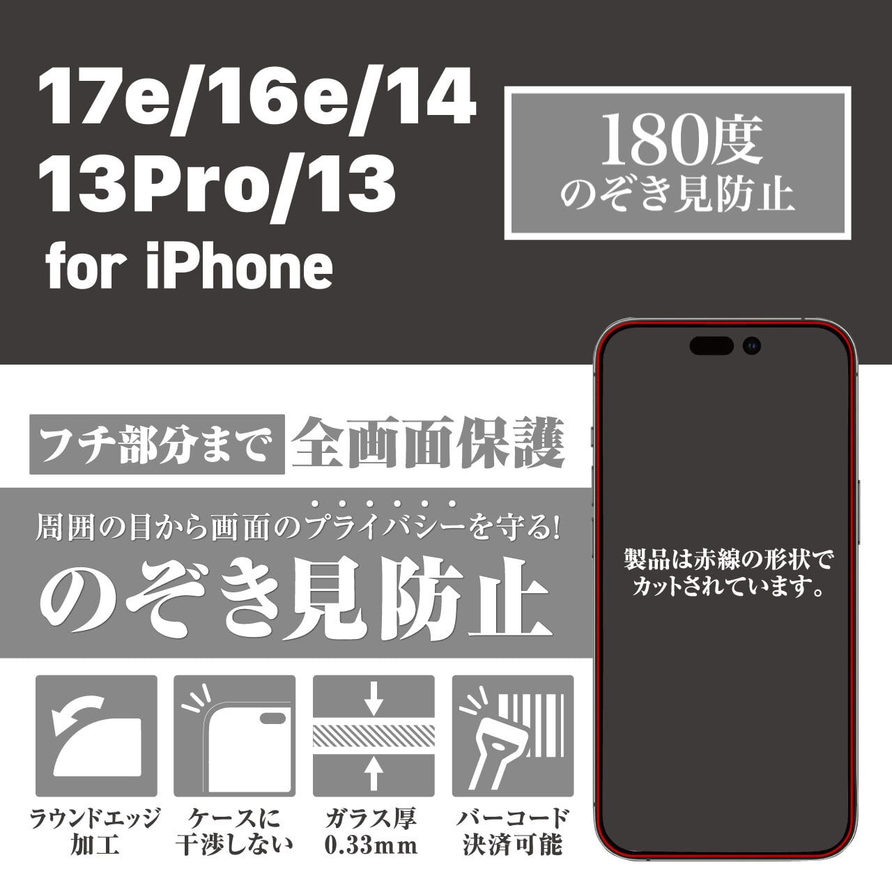 <貼り付けキット付き>iPhone17e/16e/14/13pro/13【のぞき見防止】3カ月保証付き『ガラスフィルム鎧』全面フルカバー(黒フチタイプ)
