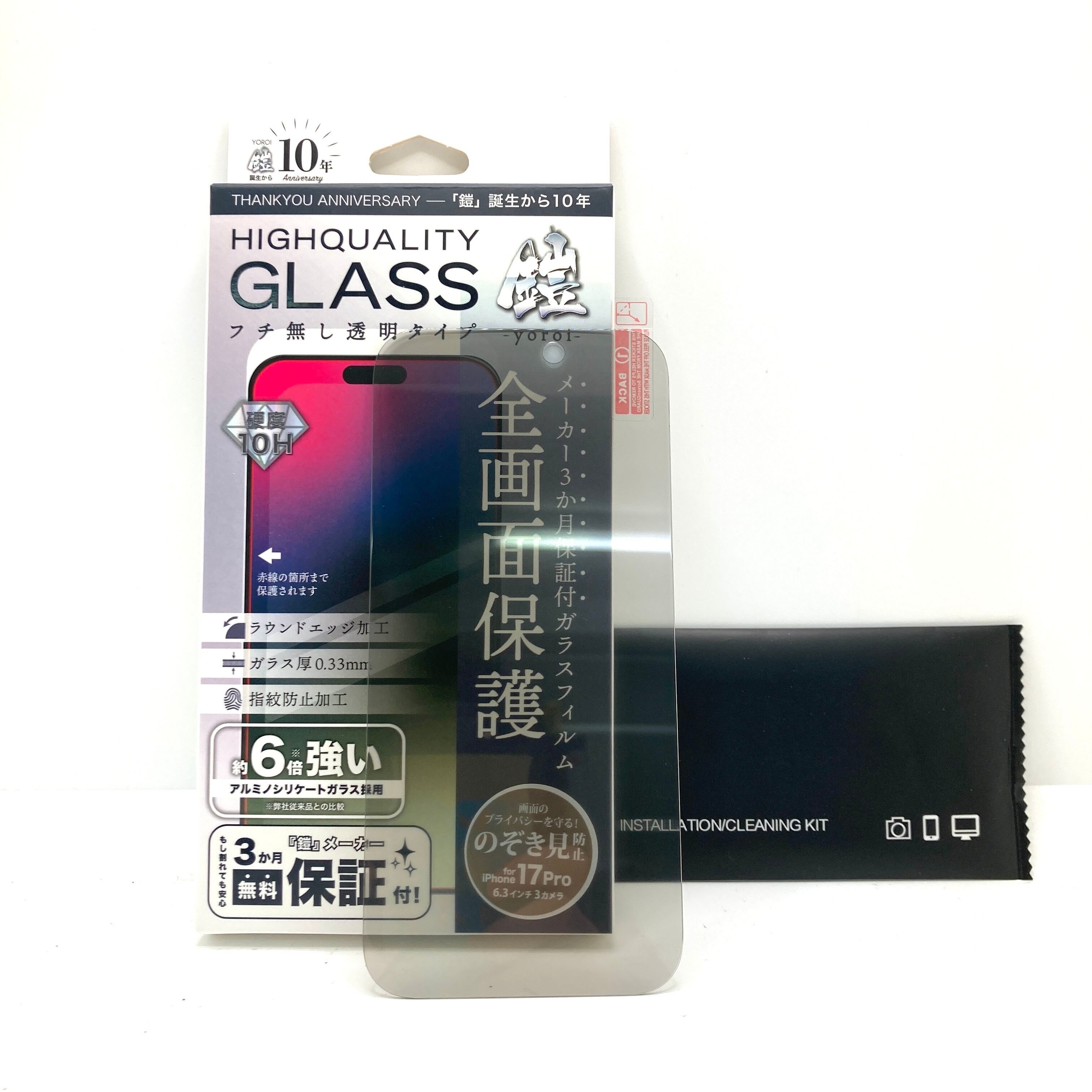 iPhone17Pro【のぞき見防止】3カ月保証付き『ガラスフィルム鎧』平面フルカバー
