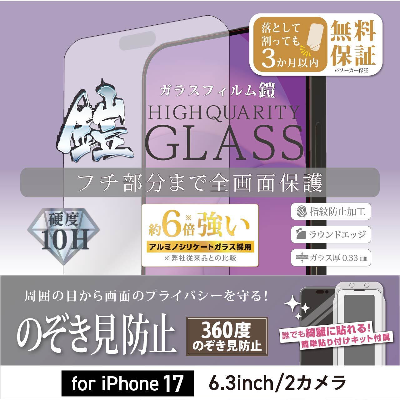 iPhone17【360度のぞき見防止】3カ月保証付き『ガラスフィルム鎧』全面フルカバー(黒フチタイプ)<貼り付けガイド付き>