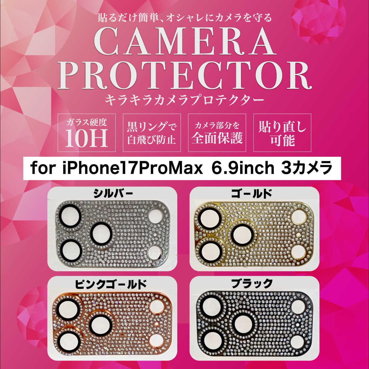 iPhone17ProMax用ガラス付きカメラプロテクターキラキラ(カメラ保護フィルム)