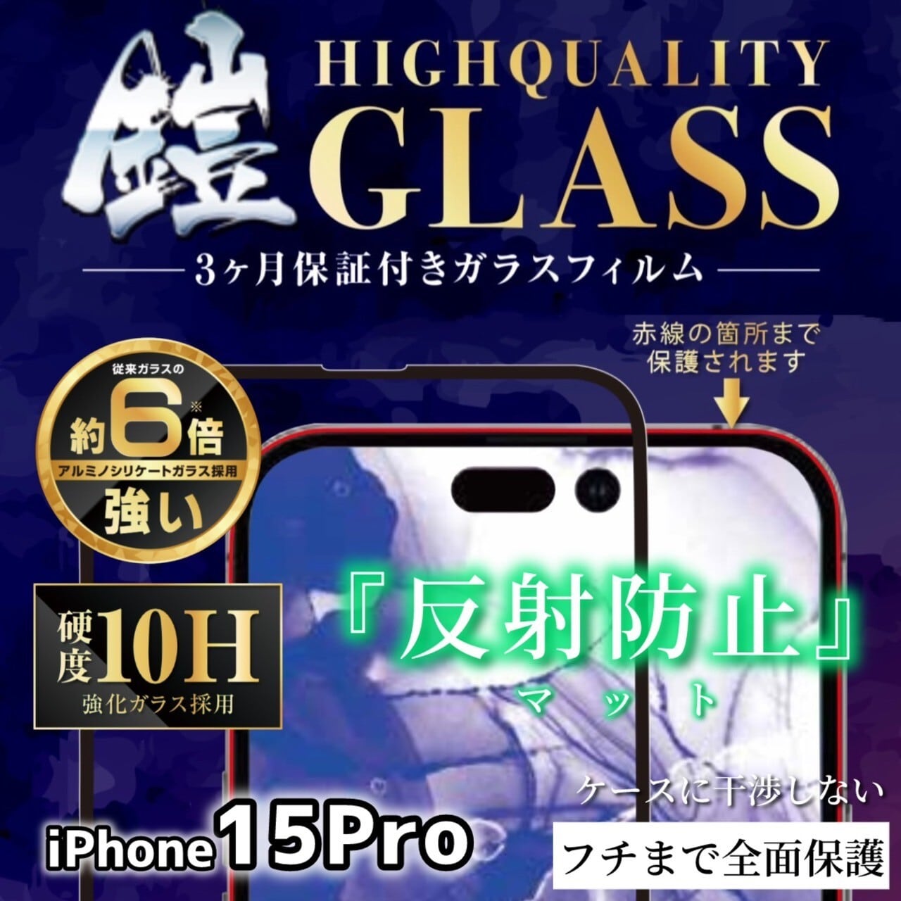 iPhone15Pro【反射防止】(マット)保証付きガラスフィルム『鎧』全面フルカバー