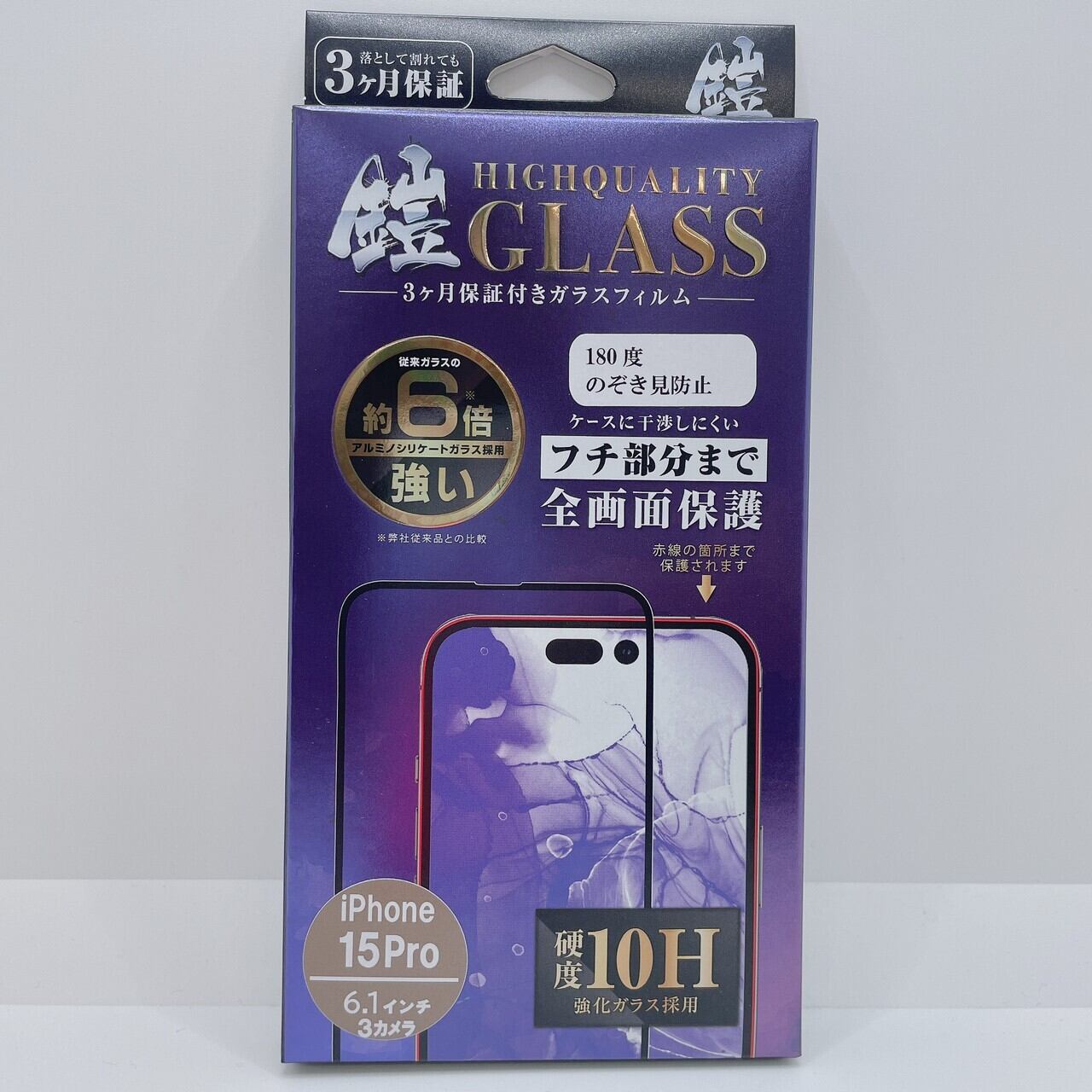iPhone15Pro【のぞき見防止】保証付きガラスフィルム『鎧』全面フルカバー