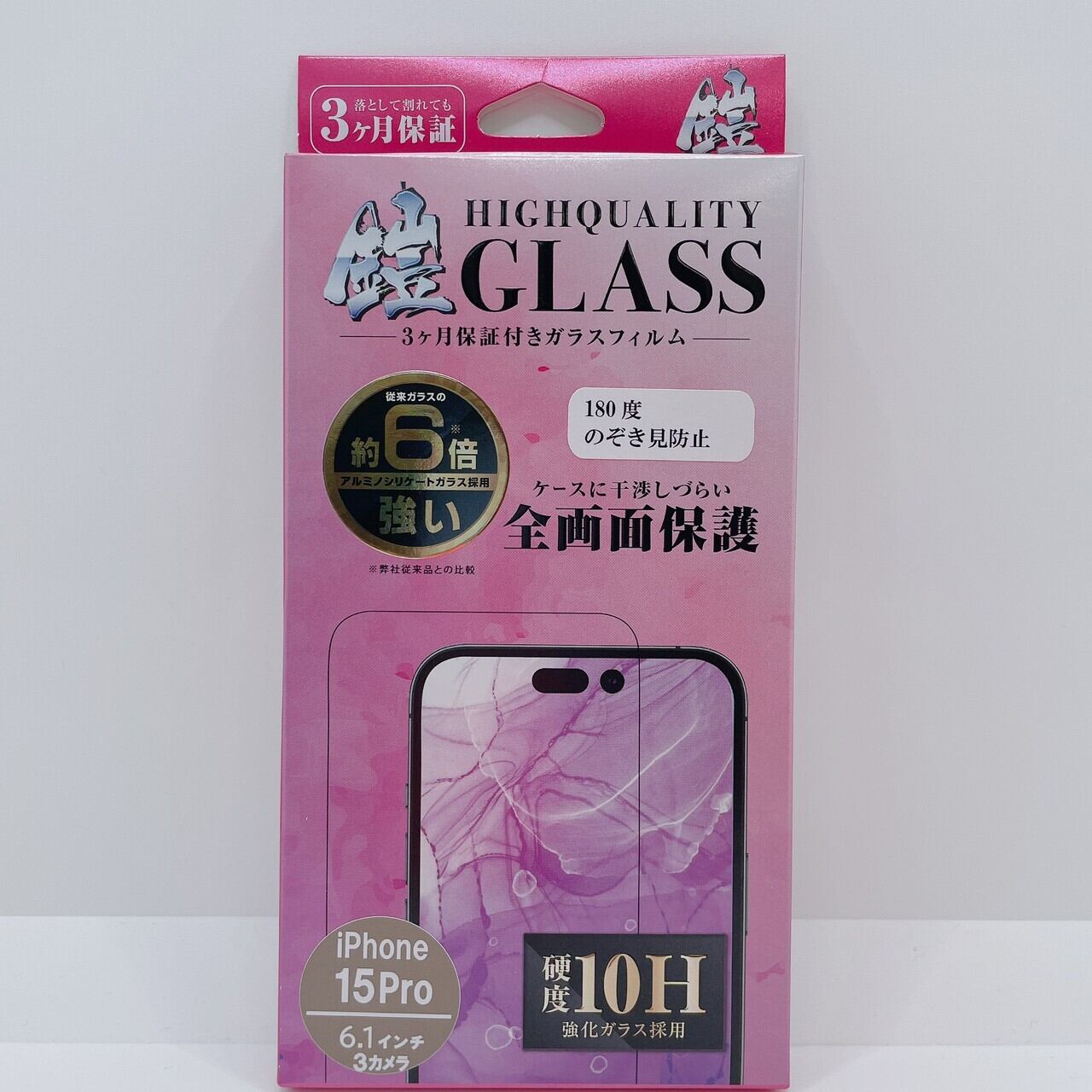 iPhone15Pro【のぞき見防止】保証付きガラスフィルム『鎧』平面フルカバー