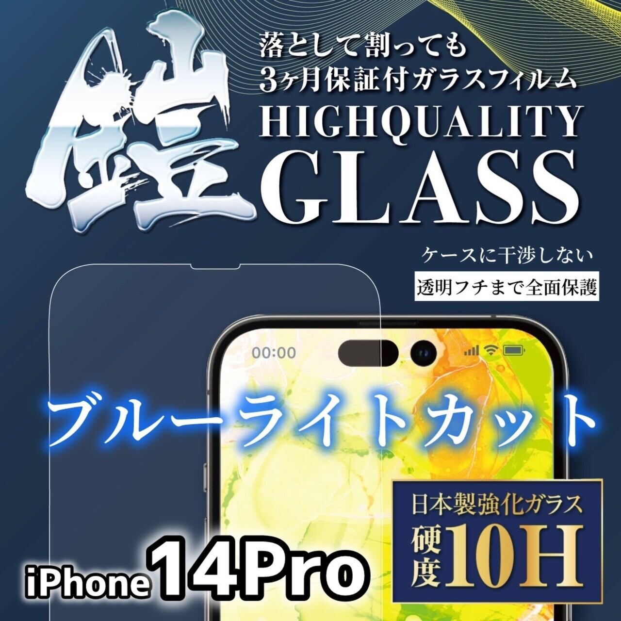 iPhone14Pro【ブルーライトカット】保証付きガラスフィルム『鎧』全面フルカバー