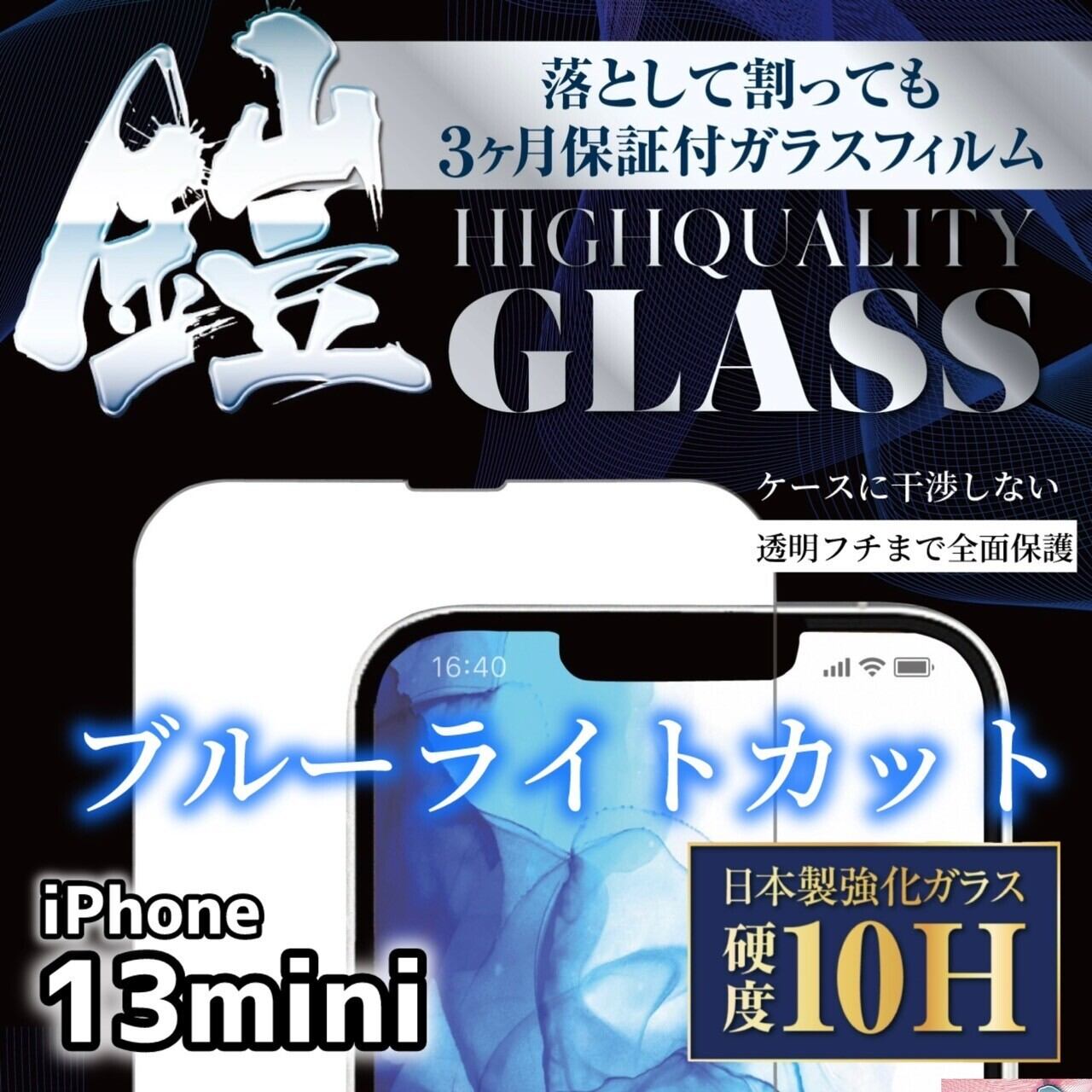 iPhone13mini【ブルーライトカット】保証付きガラスフィルム『鎧』全面フルカバー