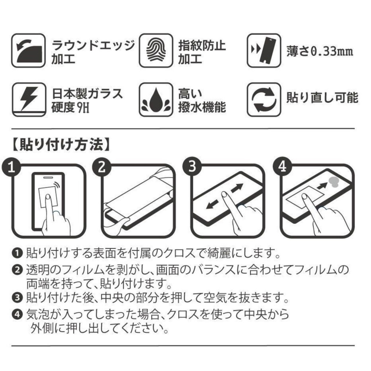 気泡が入りにくく、ガラスフィルムより比較的貼り直しも簡単です。