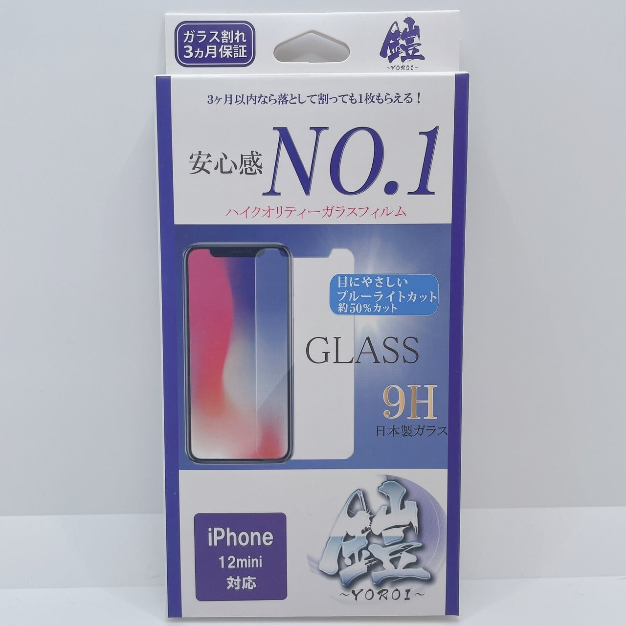 iPhone12mini【ブルーライトカット】保証付きガラスフィルム『鎧』平面タイプ