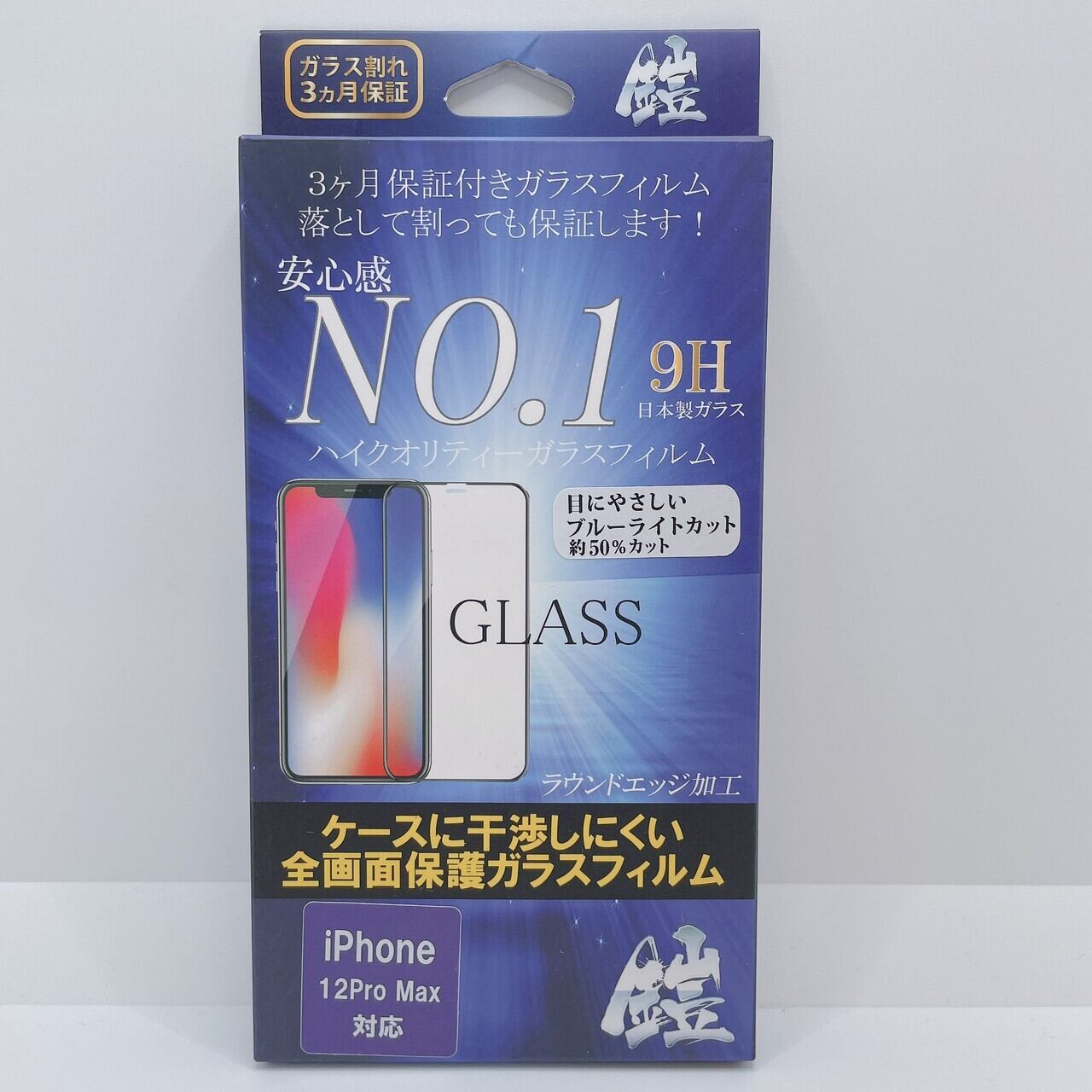 iPhone12ProMax【ブルーライトカット】保証付きガラスフィルム『鎧』全面フルカバー