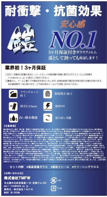 お客様の過失で落として割っても、3ヶ月以内であれば1回限り無料保証付き。
