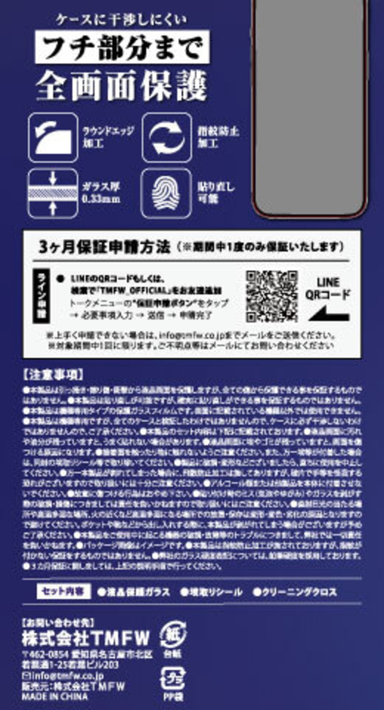強化ガラスフィルム・埃取りシール・クリーニングクロス