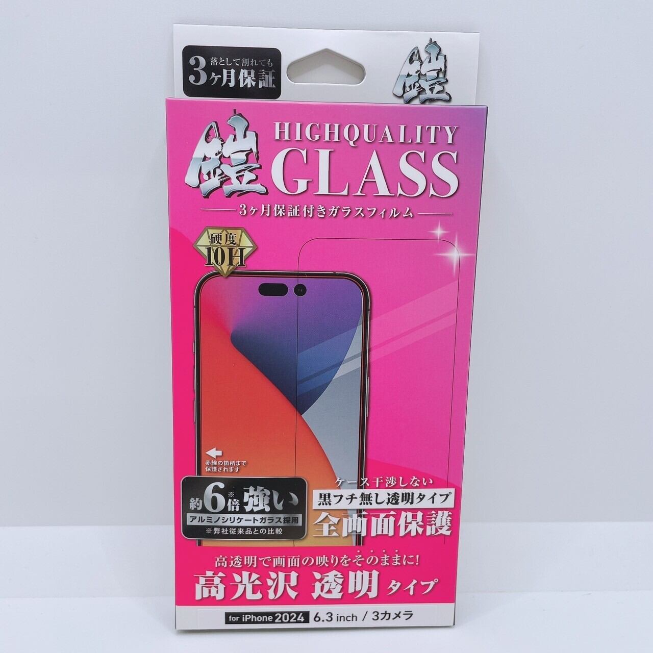 iPhone16Pro【高光沢】3カ月保証付き『ガラスフィルム鎧』平面フルカバー