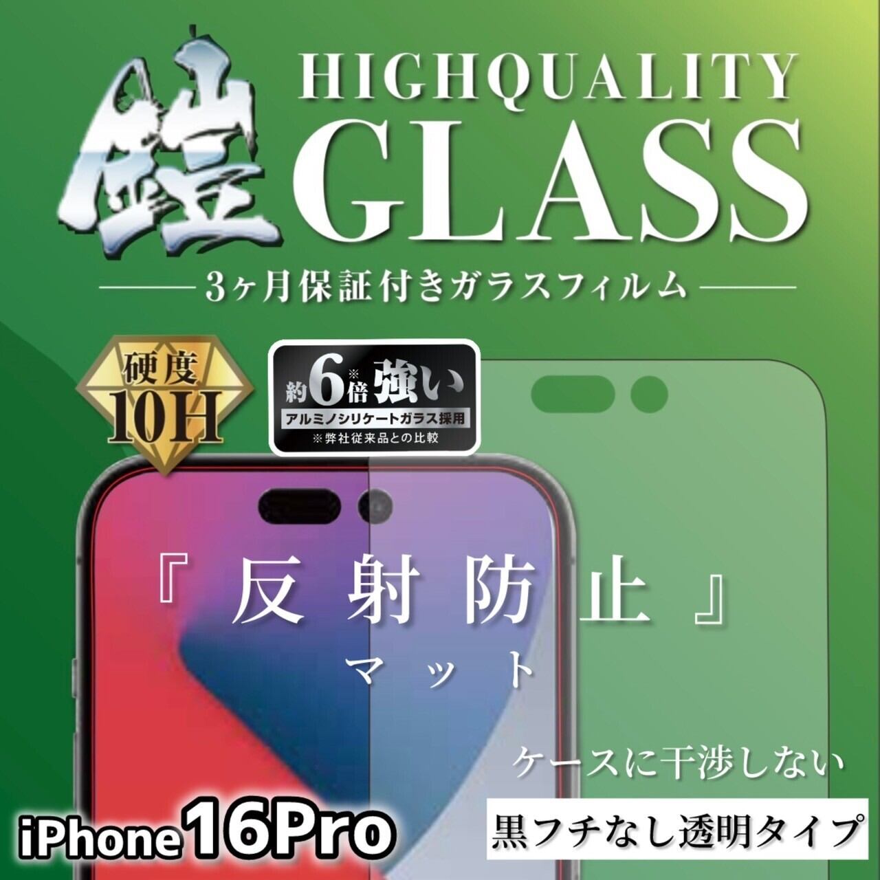 iPhone16Pro【反射防止】(マット)3カ月保証付き『ガラスフィルム鎧』平面フルカバー