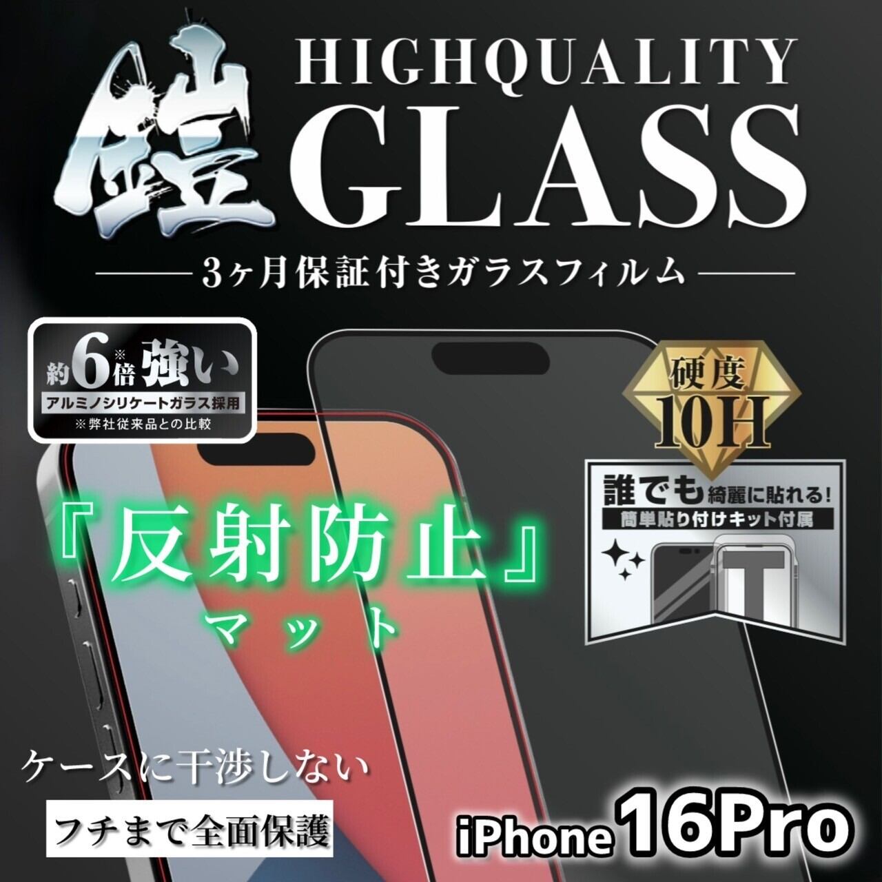 <貼り付けキット付き>iPhone16Pro【反射防止】(マット)3カ月保証付き『ガラスフィルム鎧』全面フルカバー(黒フチタイプ)