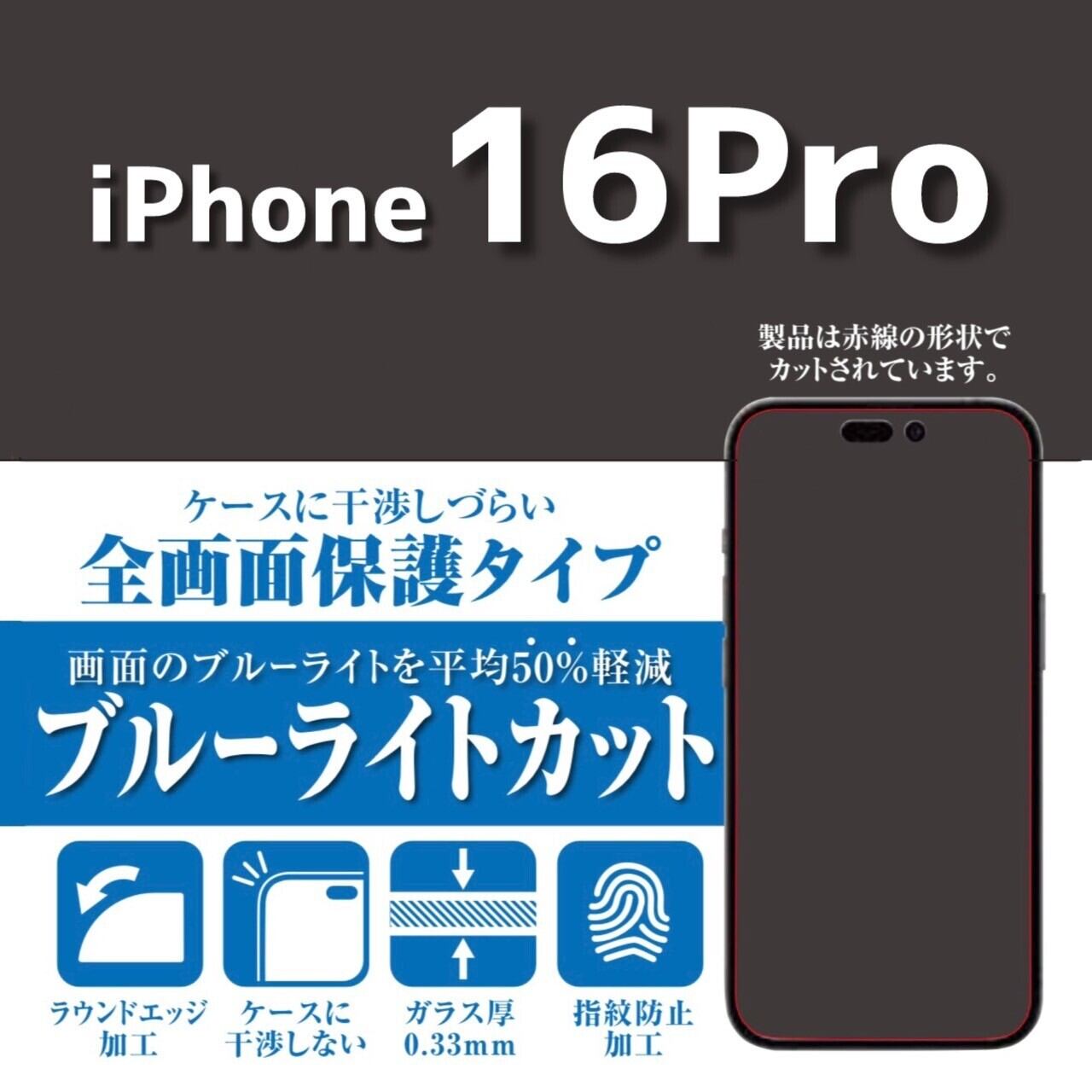 <貼り付けキット付き>iPhone16Pro【ブルーライトカット】3カ月保証付き『ガラスフィルム鎧』全面フルカバー(黒フチタイプ)