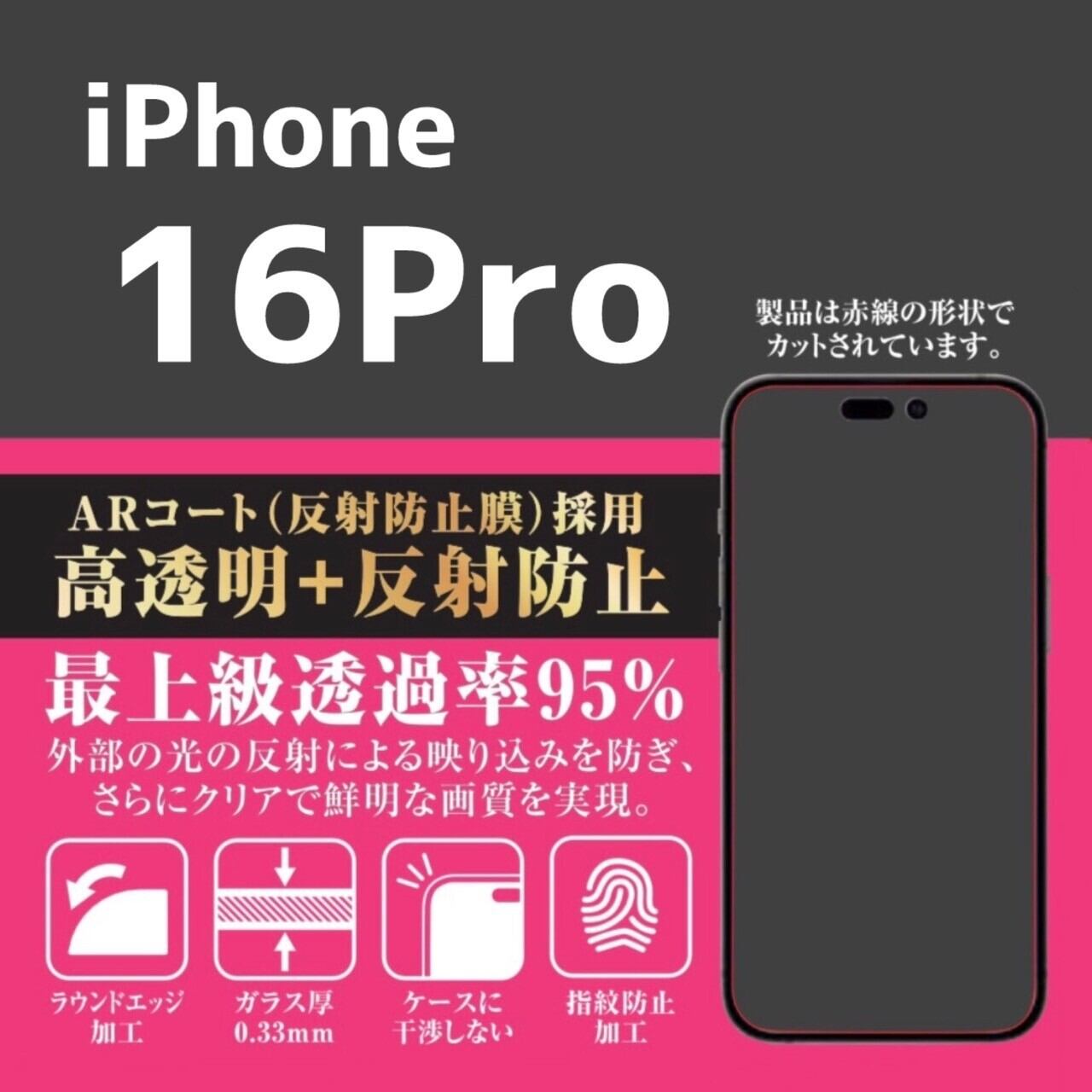 【簡単貼り付けキット付き】iPhone16Pro用 超光沢(AR) 最上級透過率(高透明+反射防止) 保証付きガラスフィルム『鎧』全面フルカバー