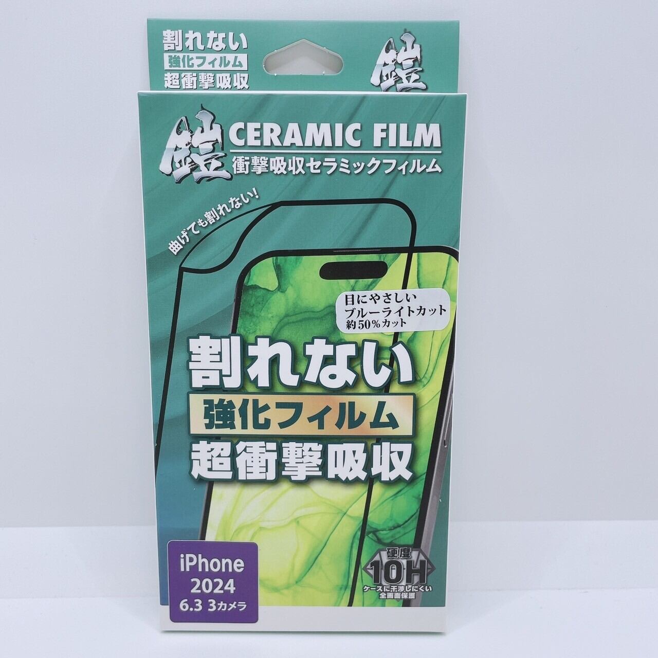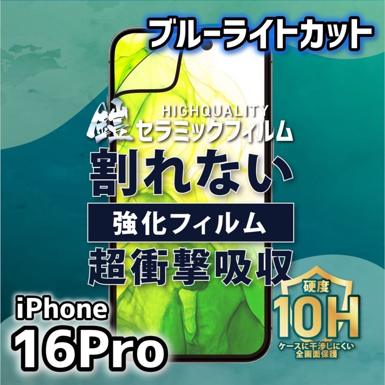 iPhone16Pro【ブルーライトカット】割れないセラミックフィルム『鎧』全面フルカバー