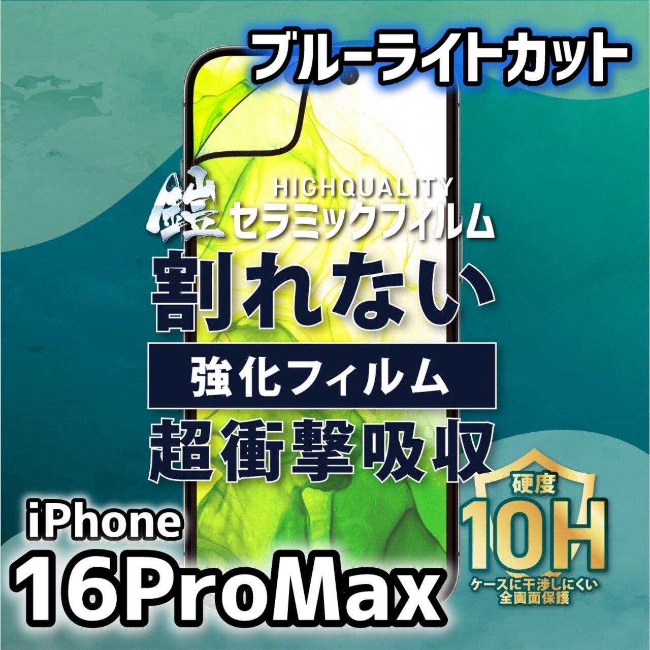 iPhone16ProMax【ブルーライトカット】割れないセラミックフィルム『鎧』全面フルカバー