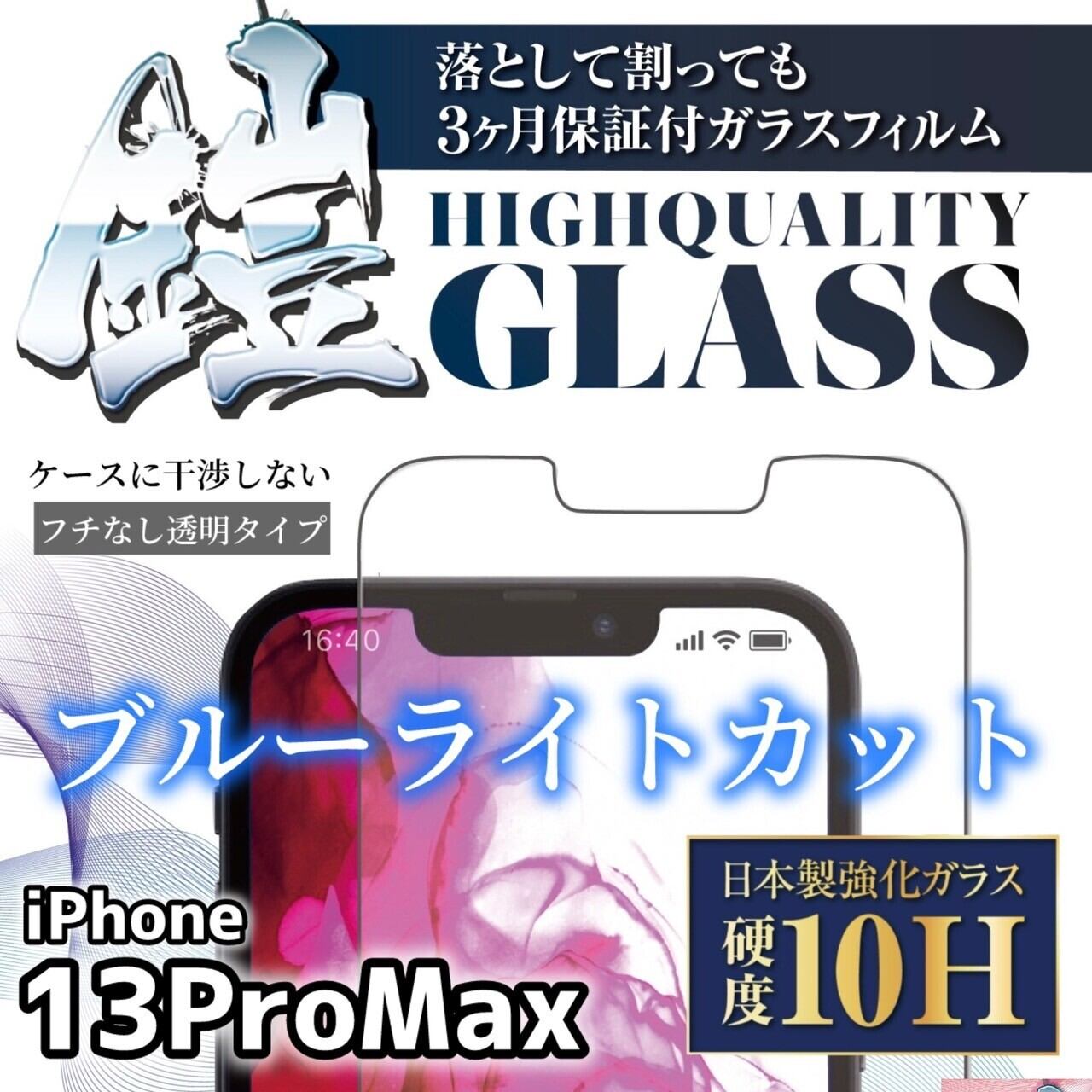 iPhone13ProMax【ブルーライトカット】保証付きガラスフィルム『鎧』平面タイプ